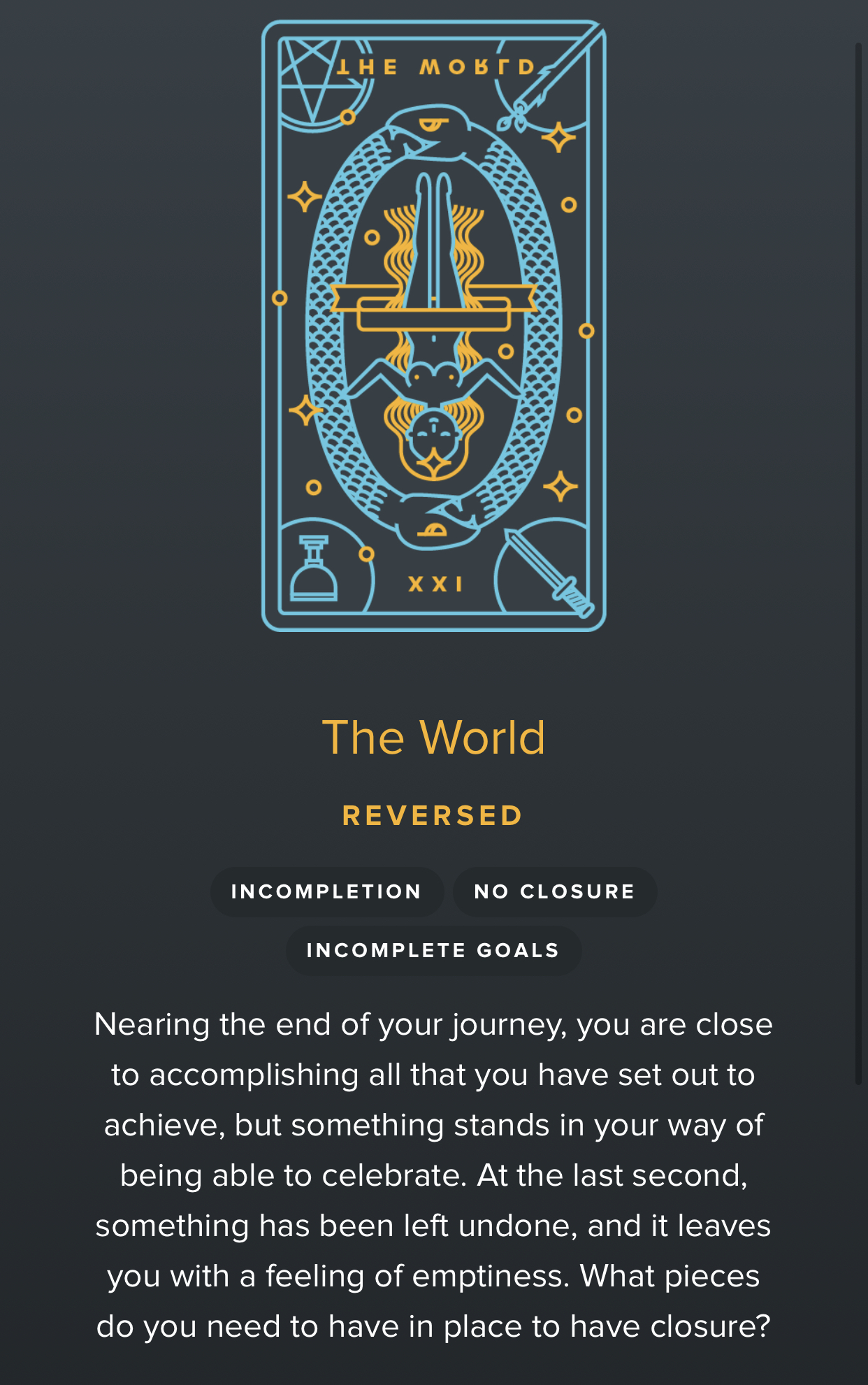I decided to give the tarot bit a try, and so I did a quick reading using The Golden Thread Tarot app, which I highly recommend in no small part because the cards are illustrated in a lovely fashion, and the explanations for them are succinct and detailed. Since I have been struggling with how I feel in mind, body, and spirit, that’s the reading I did, and these are the results I got.